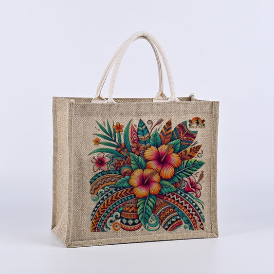 Jute Beach Bag – Polynesian Print Eco Tote | Siva Vibe