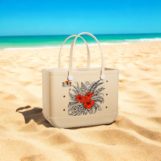 EVA Beach Bag – Polynesian Hibiscus Print | Siva Vibe
