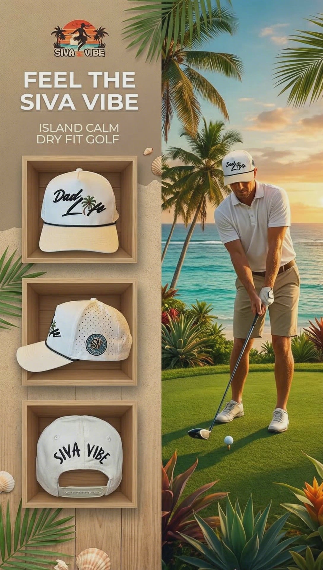 Dad Life Palm Tree Golf Hat – Lightweight Nylon Dad Hat | Siva Vibe